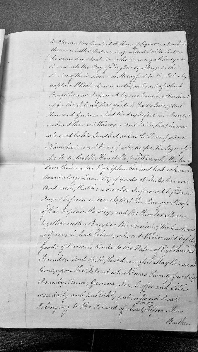 - Testimony regarding smuggling activities and customs vessels on the Isle of Man