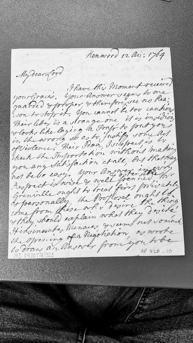 - Private letter from a correspondent to a nobleman (addressed as 'My dear Lord' and 'Your Grace') discussing a recent answer to what appears to be a proposal regarding importation restrictions. The writer advises the recipient that his response is appropriately guarded and proper, warns against what he perceives as a trap in the other party's letter, and criticizes the approach taken, suggesting Mr. Grenville should negotiate privately and personally.