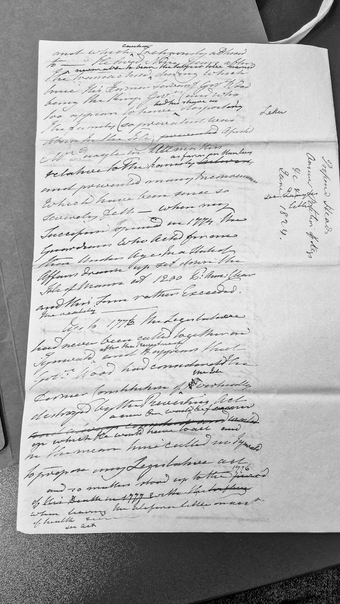 - Multiple illegible passages marked throughout; text contains extensive strikethroughs and interlinear additions; margin contains rotated notes with uncertain readings including references to '1824' and incomplete words; significant transcription challenges with editorial markup indicating lacunae and ambiguities.