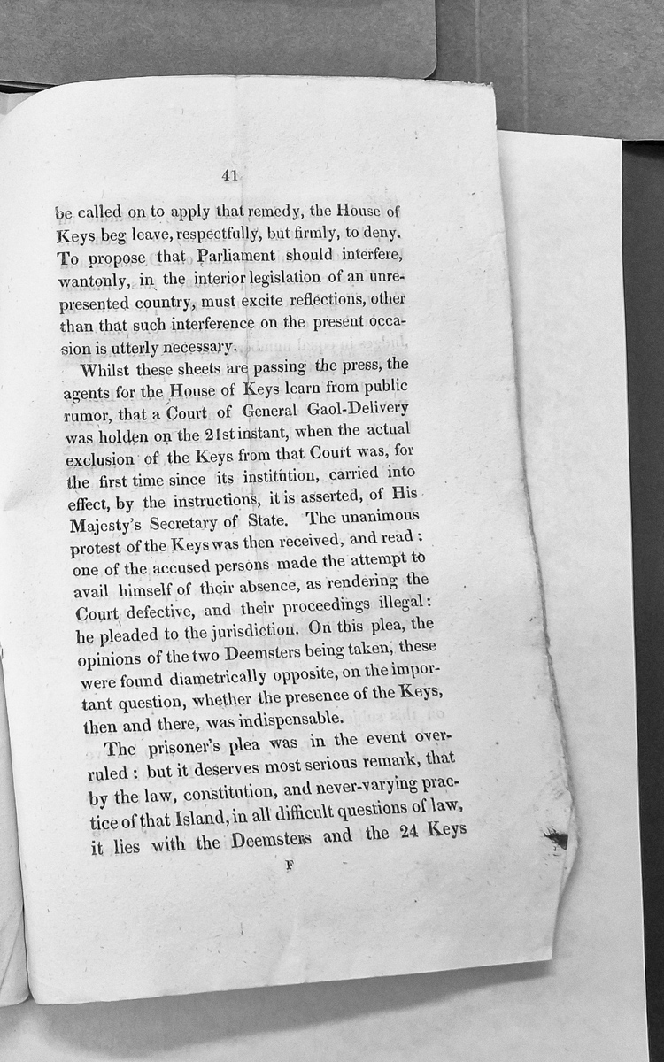- House of Keys protest against exclusion from Court of General Gaol-Delivery