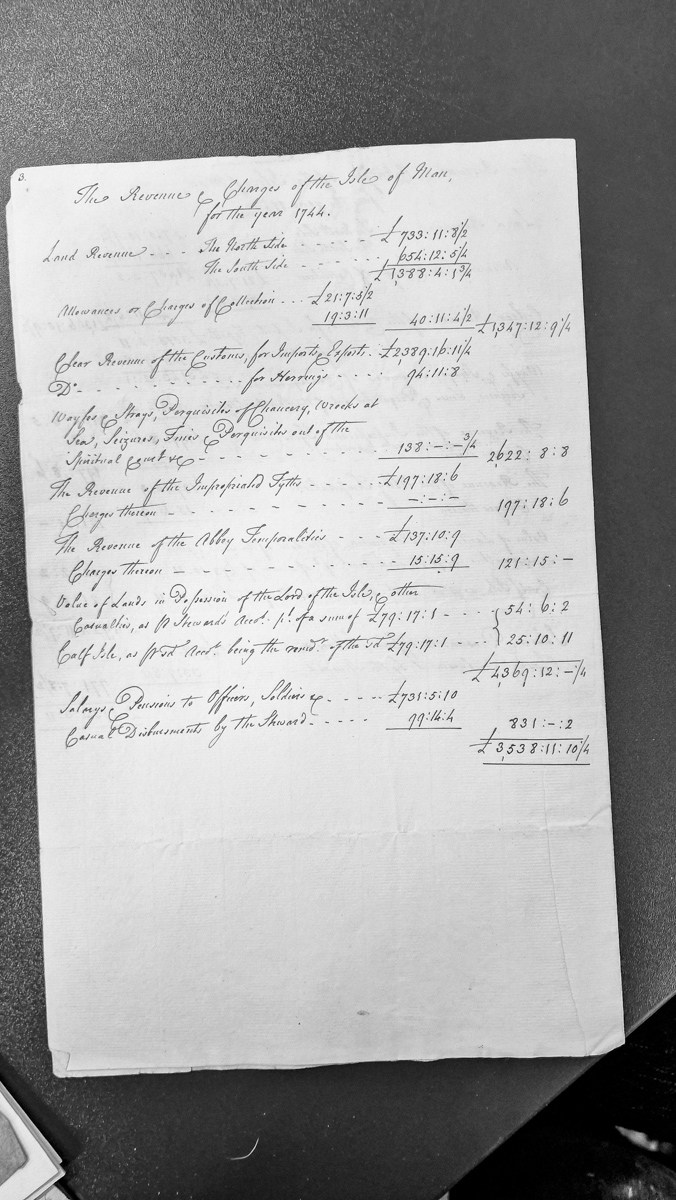 - Revenue and Charges of the Isle of Man for the year 1744