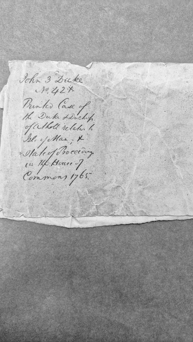 - Printed case of Duke & Duchess of Atholl relative to Isle of Man and House of Commons proceedings 1765