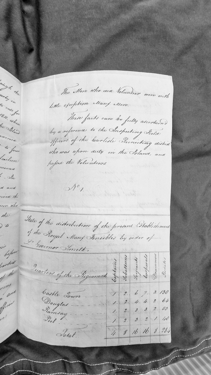 - Distribution of Royal Manx Fencibles establishment by Lt. Governor Smelt