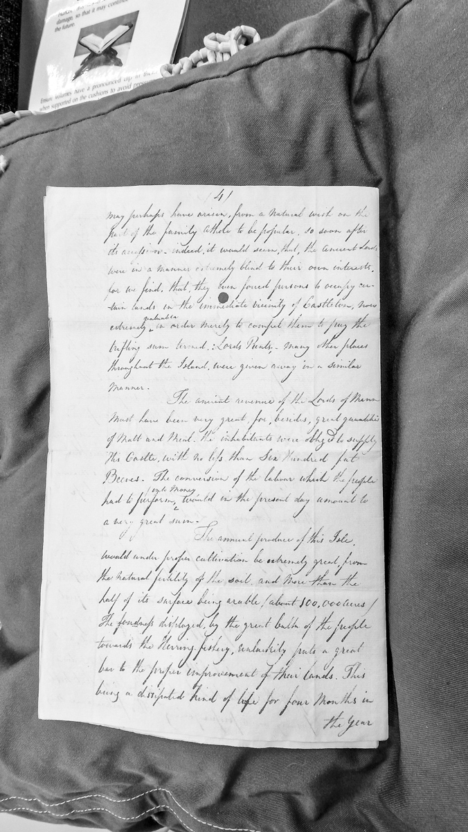 - A historical account discussing the ancient revenue systems of the Lords of Mann, including feudal obligations such as the supply of malt, meal, and cattle. The text examines the lords' management of lands near Castletown and comments on the island's agricultural potential and the population's preference for herring fishing over land cultivation.