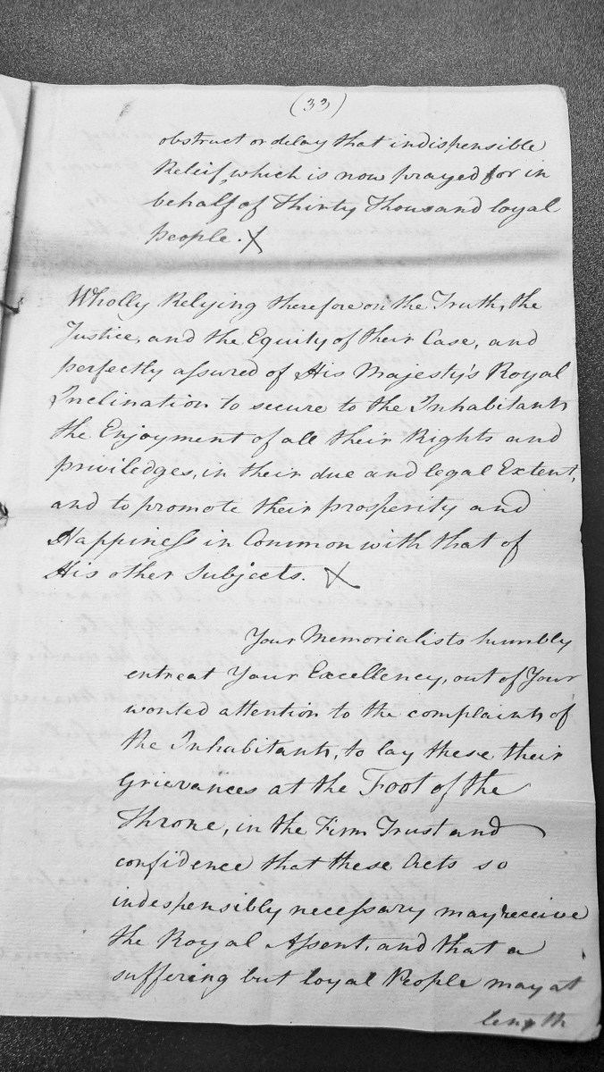 - Petition on behalf of thirty thousand loyal people seeking relief and royal assent