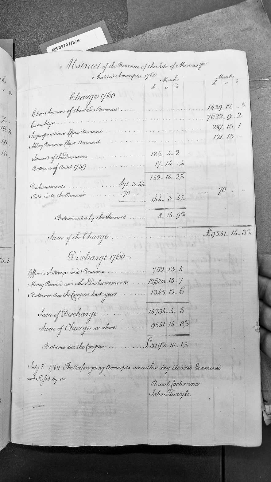 Revenue Abstract for Isle of Man audited accounts for 1760