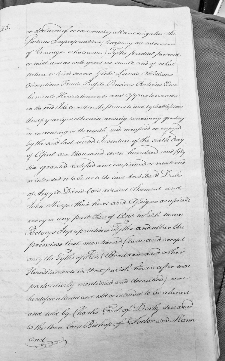- Legal document concerning rectories, impropriations, tithes and church properties in Isle of Man